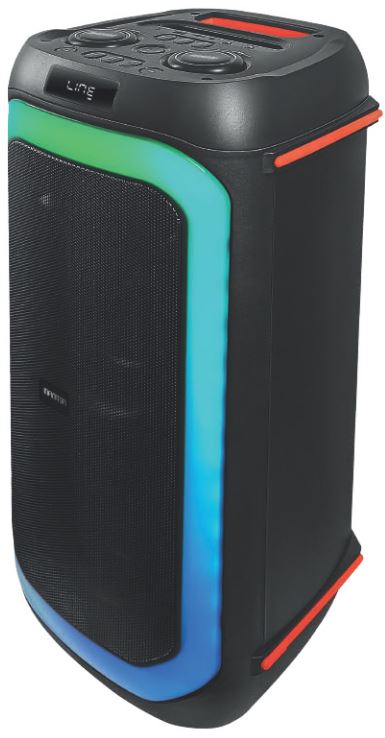 Control remoto incorporado // Función TWS // Micrófono incluído // Iluminación LED // 5h de autonomía de la batería // Radio FM // Entrada USB // Potencia RMS 70W // Magneto 80mm // Dimensiones 64x30x30 cm